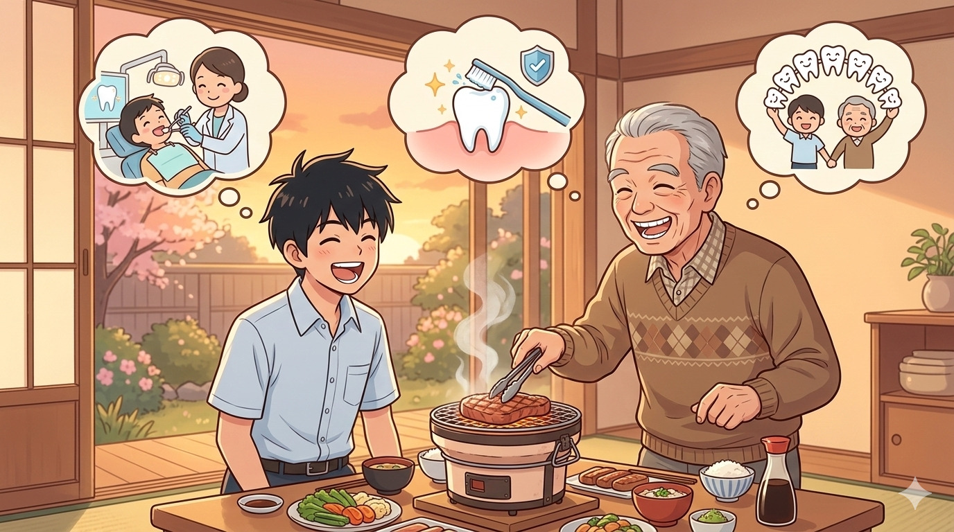 あなたの歯は、一生モノ。 そして、お肉を食べる喜びも、一生モノ。 さあ、今夜も「80歳の自分」を想像しながら、丁寧なケアを始めましょう!